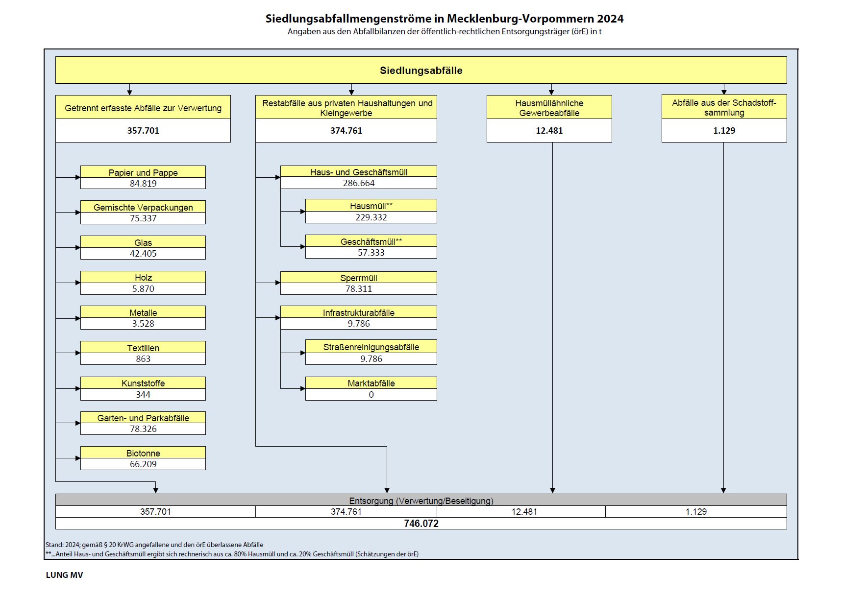 Siedlungsabfallmengenströme in Mecklenburg-Vorpommern